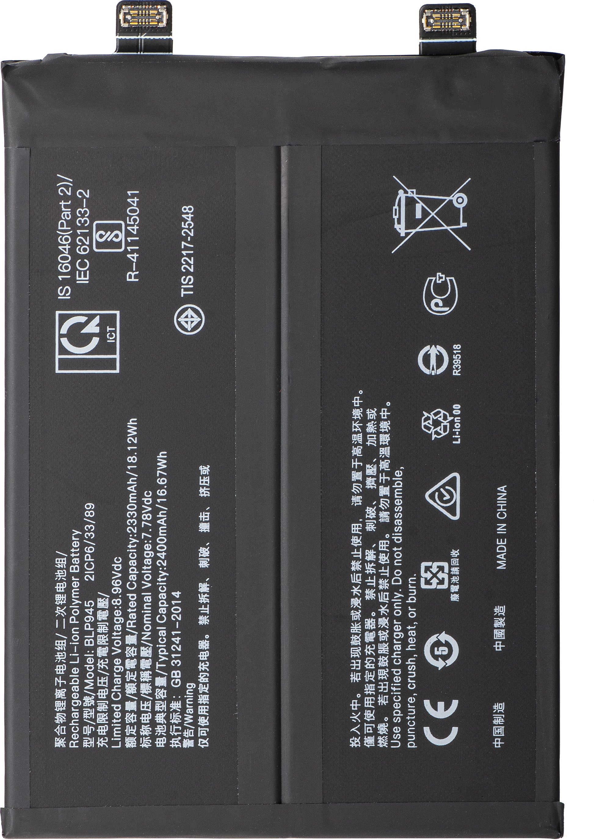 Capacity 2330mAh