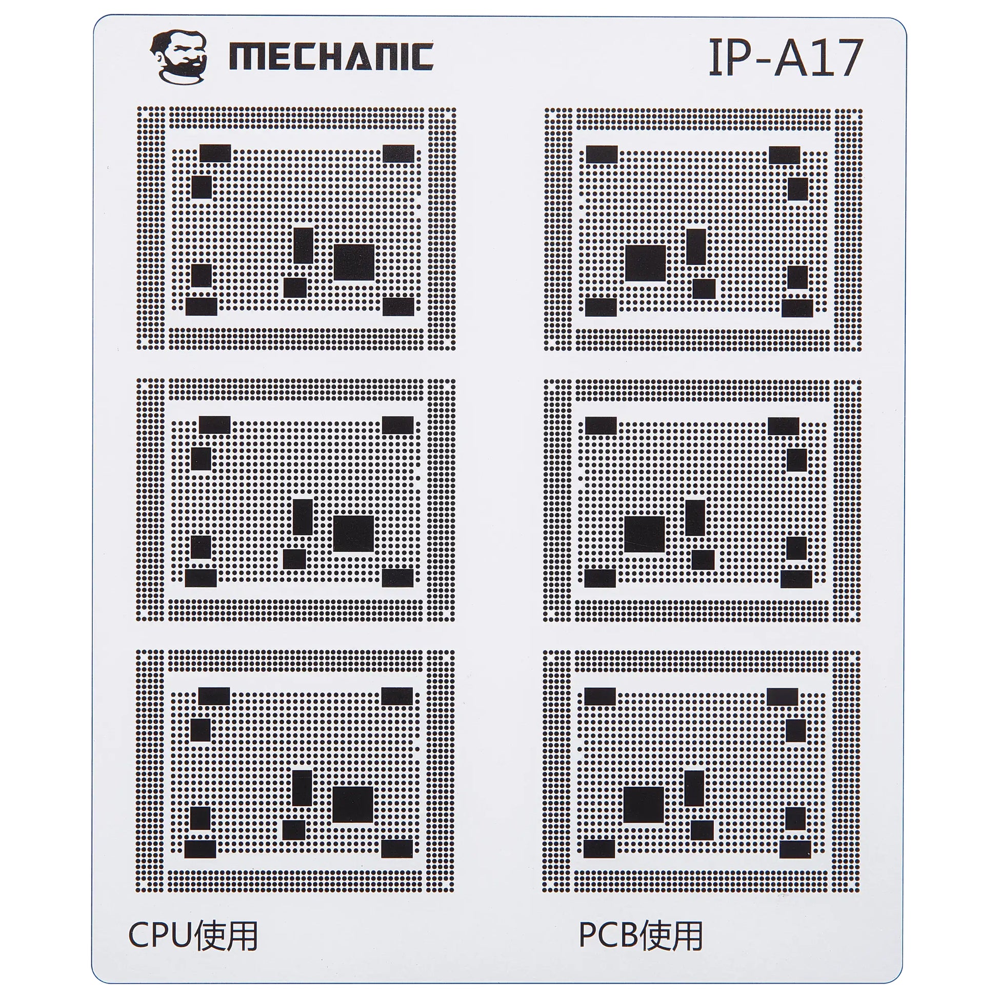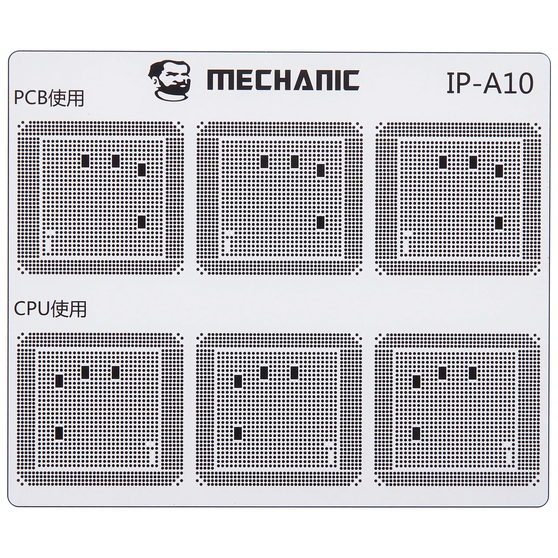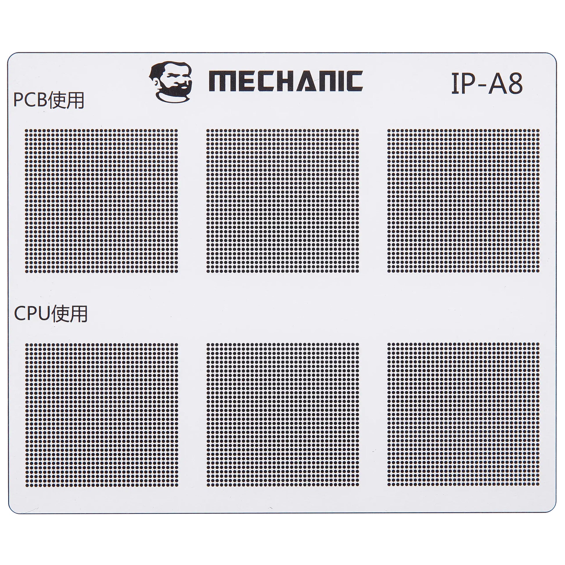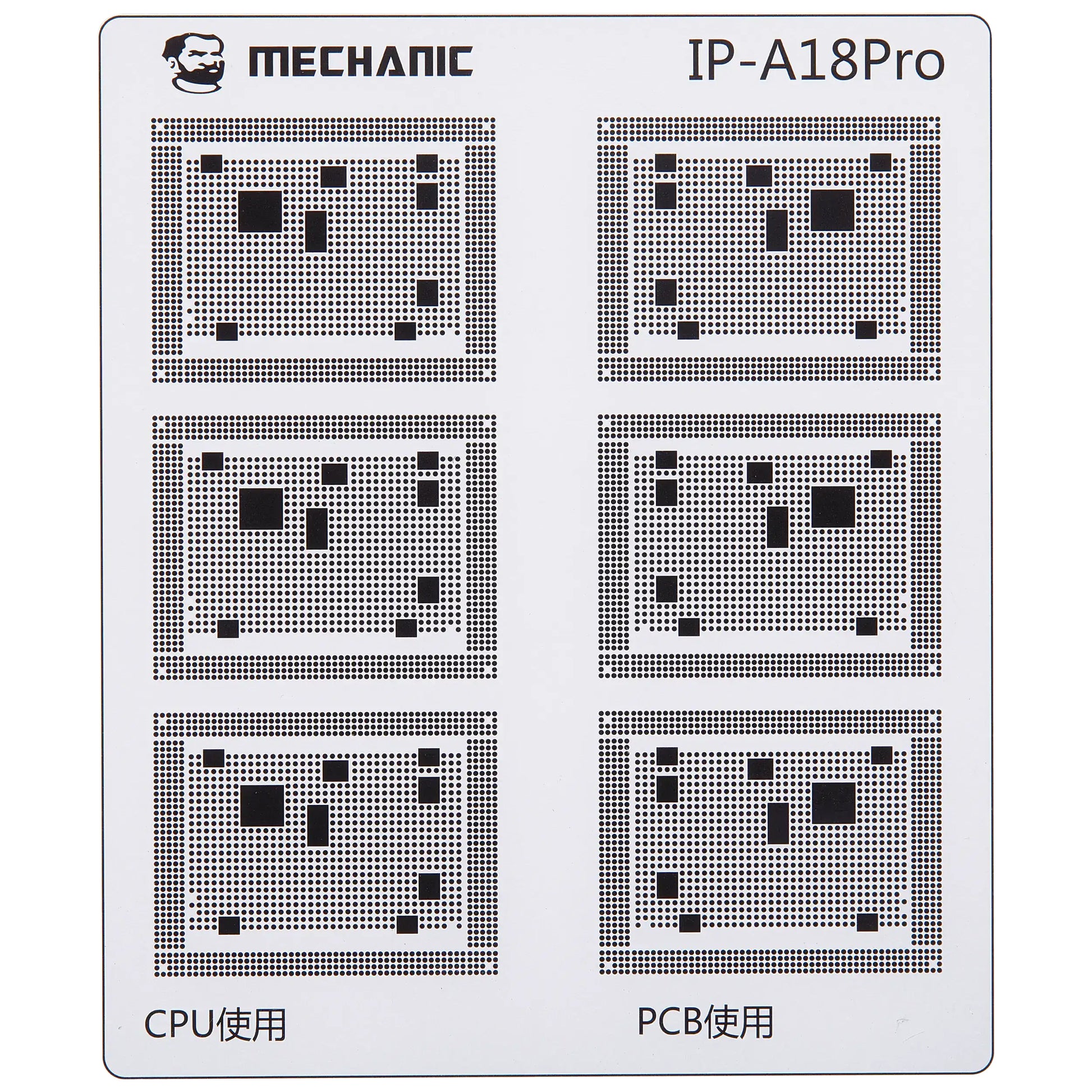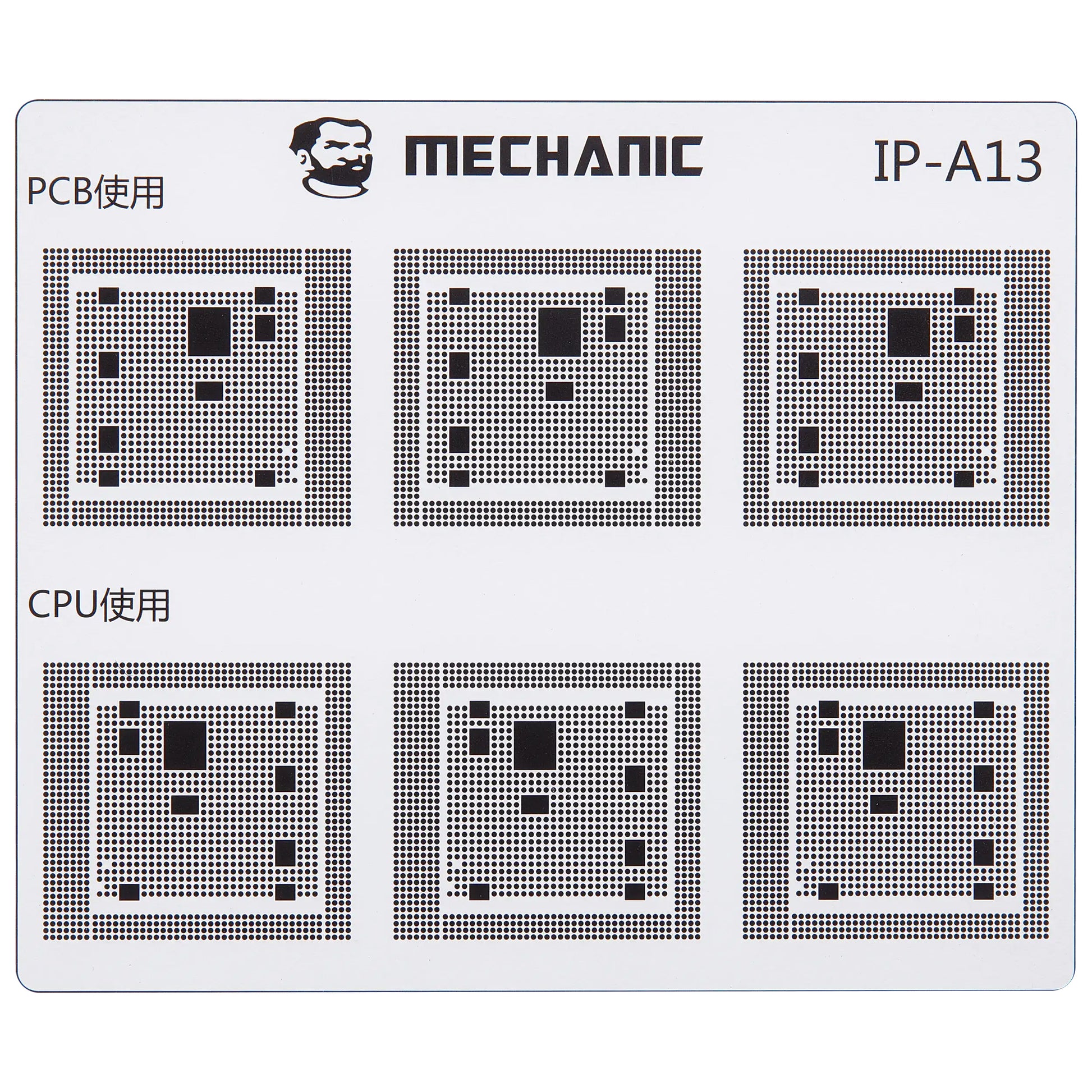Isolate the traces on the motherboard with maximum precision using the professional Mechanic COM80 template, dedicated to CPU repairs on the Apple iPhone 6 - 16 series.
