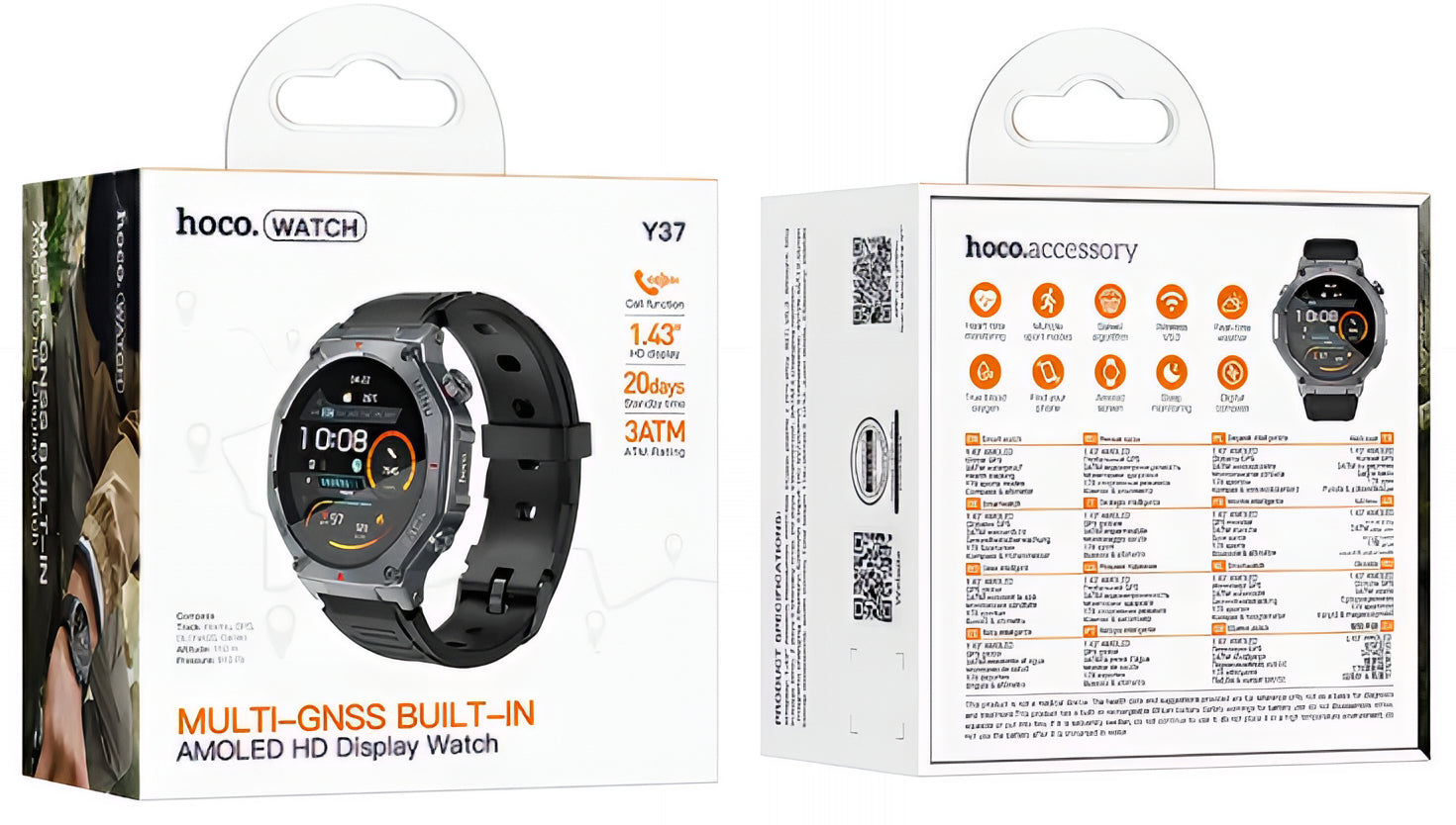 Smartwatch HOCO Y37 Call - Black You have at your disposal a modern smartwatch, designed for an active and connected lifestyle. The HOCO Y37 Call offers you a 1.43 inch AMOLED screen, clear and well-defined, which ensures excellent visibility in any situation. The Bluetooth calling function allows you to make and receive calls directly from the watch, without having to take your phone out of your pocket. The integrated GPS gives you the freedom to monitor your routes and activities without depending on a smartphone, making it ideal for outdoor movement or training. Monitoring and autonomy You benefit from useful health and sports functions, such as heart rate monitoring and dedicated sports modes, which help you track your daily progress. The watch is water-resistant according to the 3ATM standard, so you can wear it without worry in various activities. The large capacity battery ensures extended autonomy, allowing prolonged use without frequent charging. Synchronization with the Gloryfit Pro app gives you quick access to your data and efficient control of the information collected. Features: - Display: AMOLED 1.43 inch - Display resolution: 466 px - Connectivity: Bluetooth 5.3, integrated GPS - Calling function: yes, via Bluetooth - Health functions: heart rate monitoring, sports modes - Water resistance: 3ATM - Internal memory: 256 MB - Battery capacity: 520 mAh - Autonomy: up to 7 days of normal use, up to 3 days with active GPS - Compatible application: Gloryfit Pro Package contents: - Charging Cable - Strap - Smartwatch HOCO Y37 Call