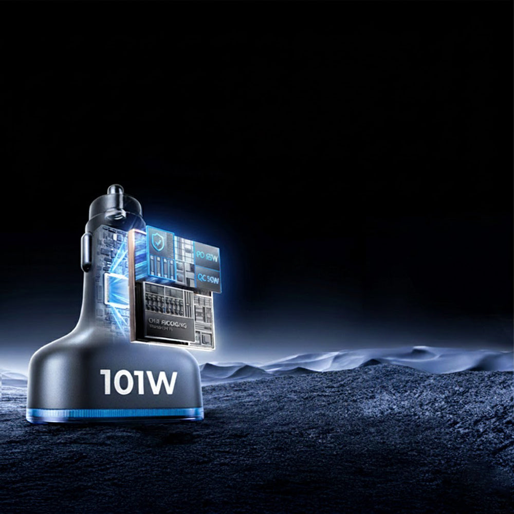 Lisen Car Charger with USB-C Cable, 101W, 3.25A, 1 x USB-A - 3 x USB-C, Black YL0223120021