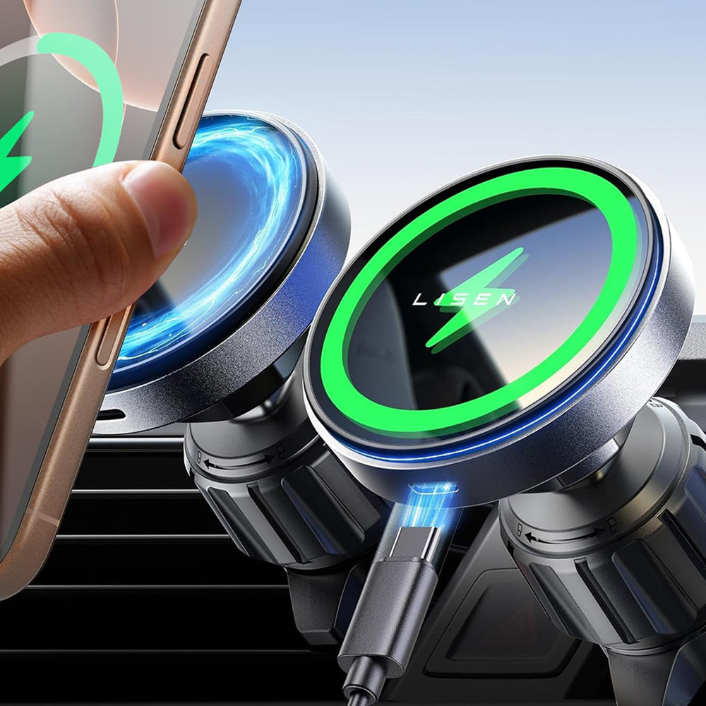 Looking for recommendations? This Lisen car holder for the ventilation grille combines the stability of a magnetic grip with modern wireless charging technology.