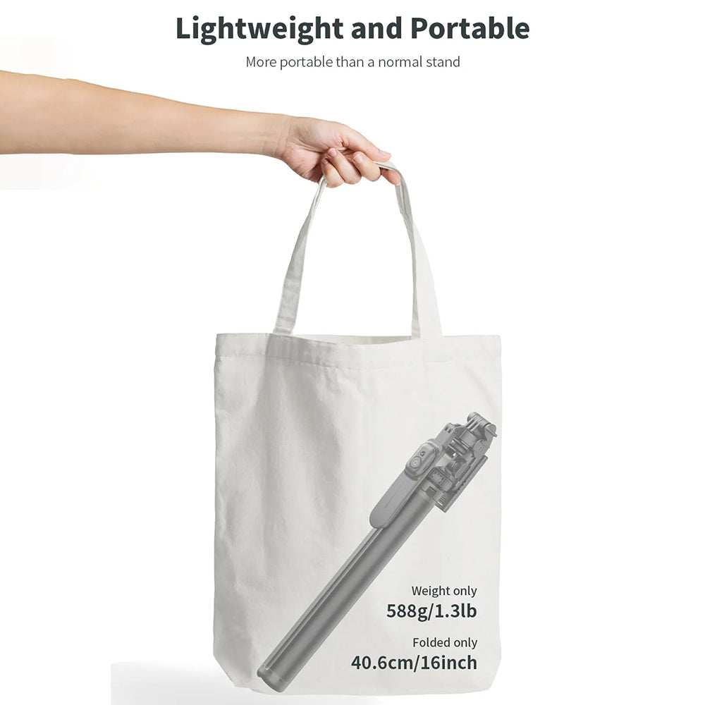 • Use the remote control to operate the selfie stick from a distance. It's so simple to control the moment of capture with the new tripod!