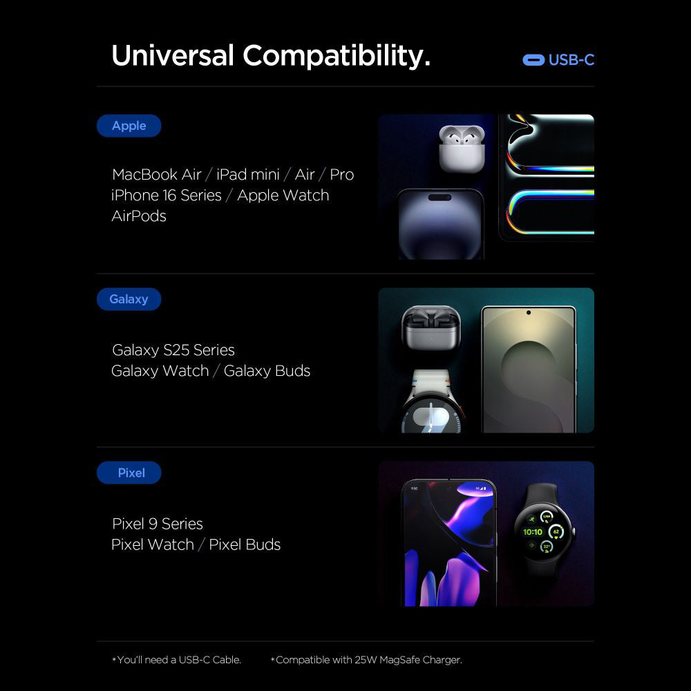 • USB-C1 + USB-C2 + USB-A: 45W + 18W (up to 63W total);