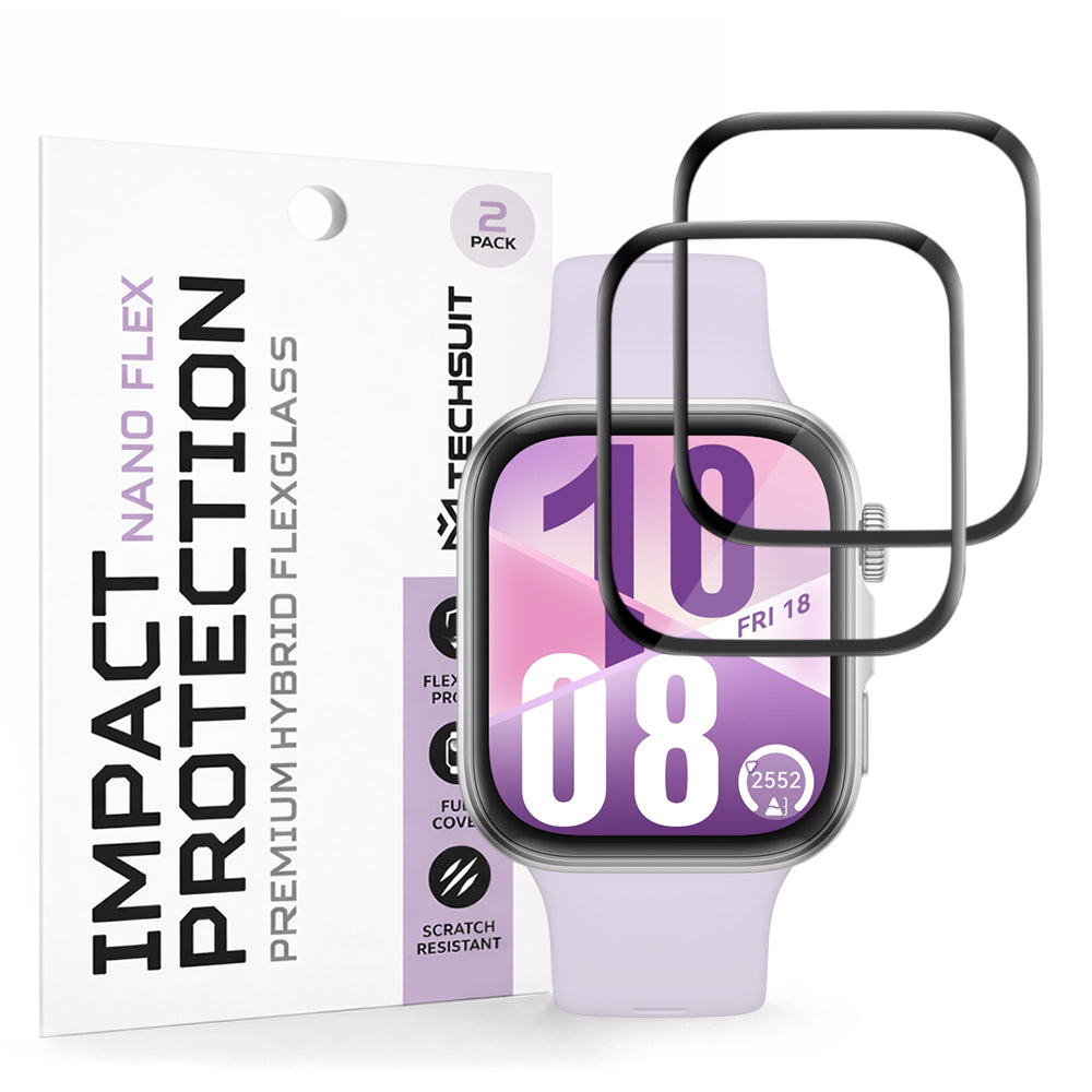 Techsuit Nano Flex Protection Film for Huawei Watch Fit 4, Set of 2 Pieces, Plastic, Black