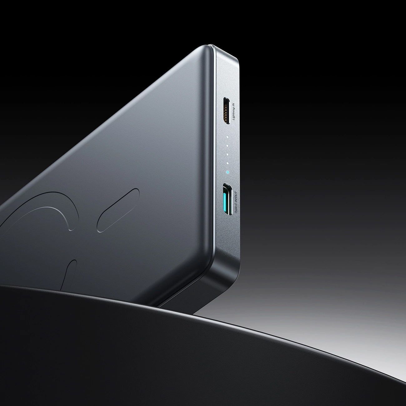 mentre il modulo magnetico potente garantisce una connessione sicura con il telefono. Gli indicatori LED facilitano il monitoraggio del livello di energia,