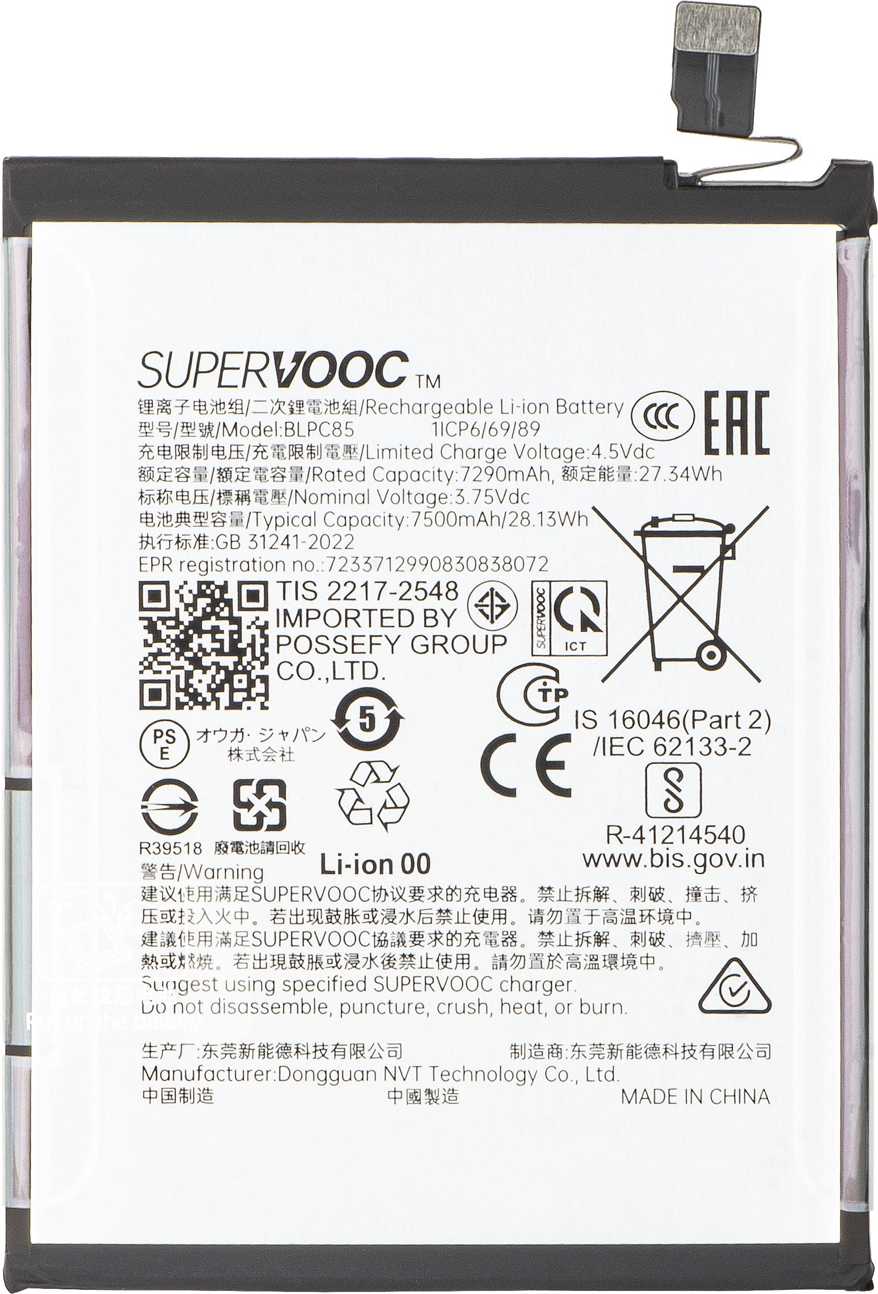 | Capacità | 7500mAh |