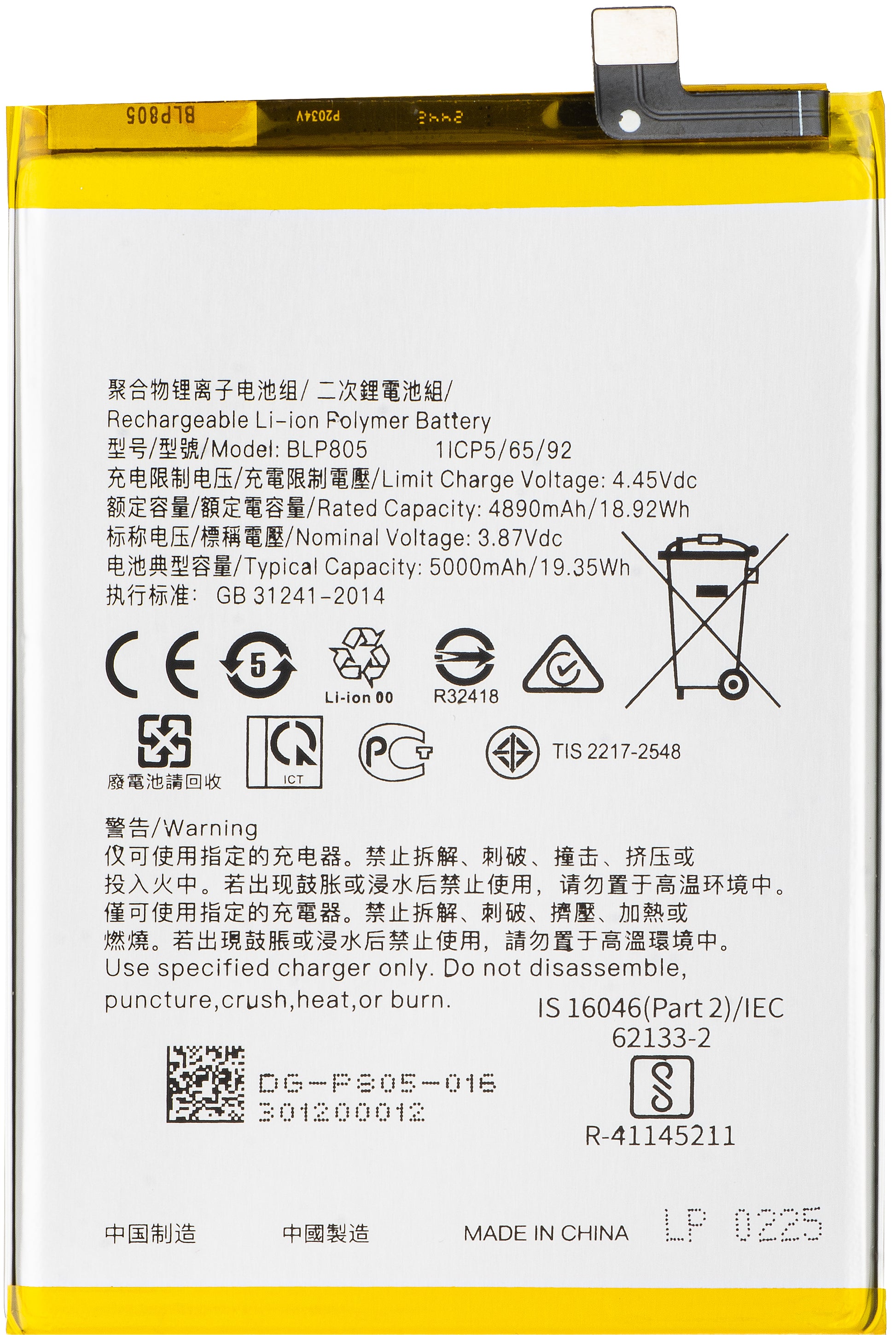 Batteria per Oppo A16s / A16 / A74 5G / A54 5G / A93 5G, BLP805