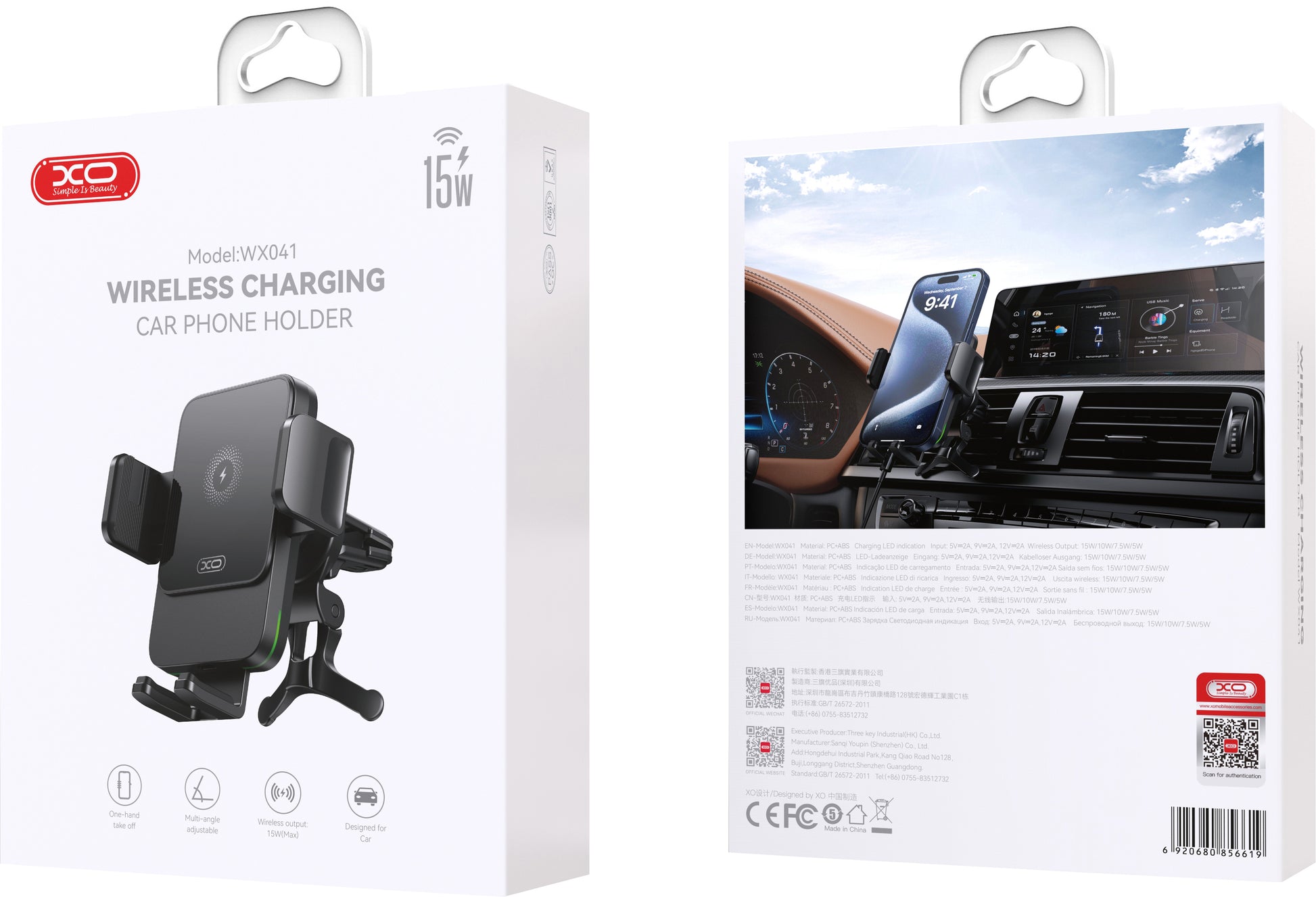 XO WX41 è un supporto auto magnetico per la griglia di ventilazione, dotato di funzione di ricarica wireless, creato per offrire comfort ed efficienza