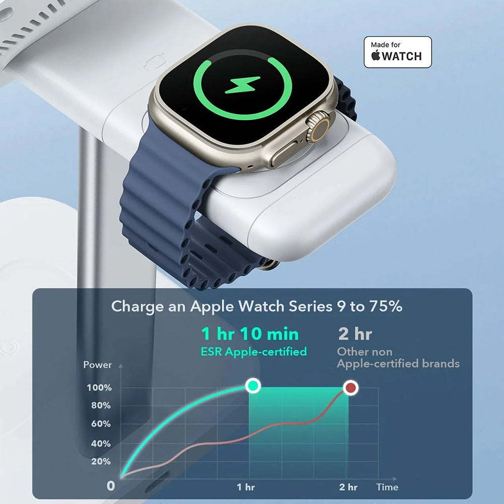 Il caricabatterie wireless ESR CryoBoost 3in1 offre un'esperienza di ricarica premium per i dispositivi Apple, combinando un design elegante