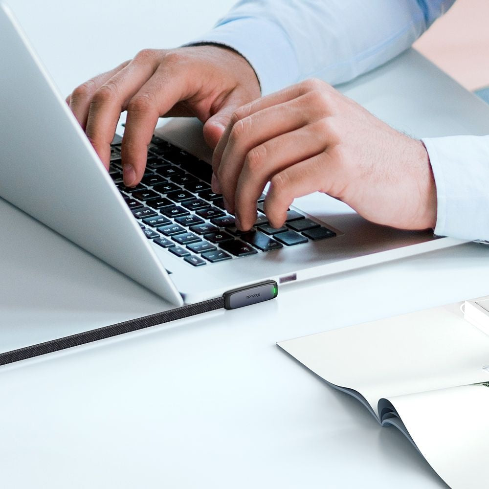 Il cavo Mcdodo combina il design piatto con il connettore ergonomico a 90, offrendo una carica stabile, un trasferimento efficiente e durabilità per l'uso quotidiano.