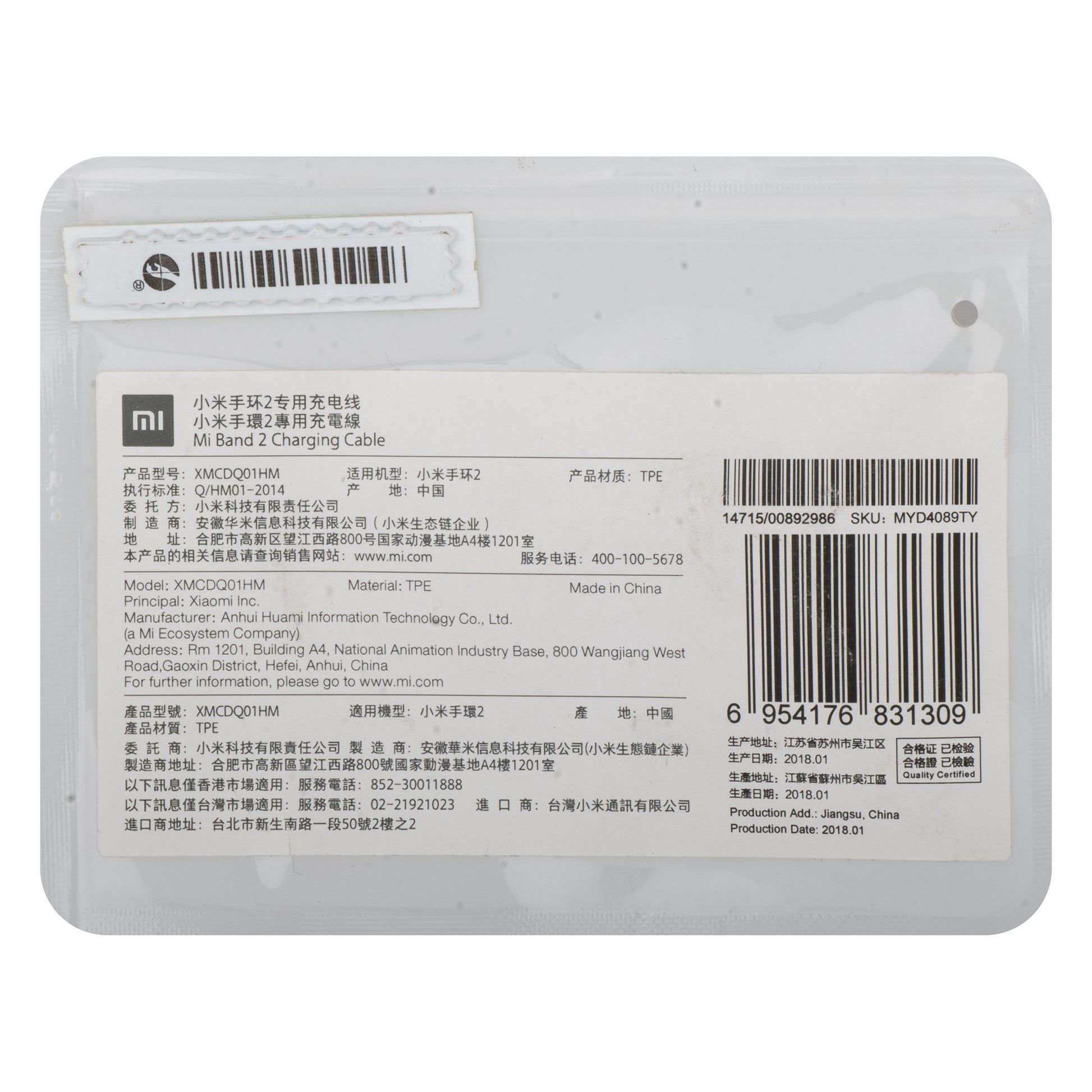Cavo di ricarica per Xiaomi Mi Band 2, USB-A, Nero MYD4089TY