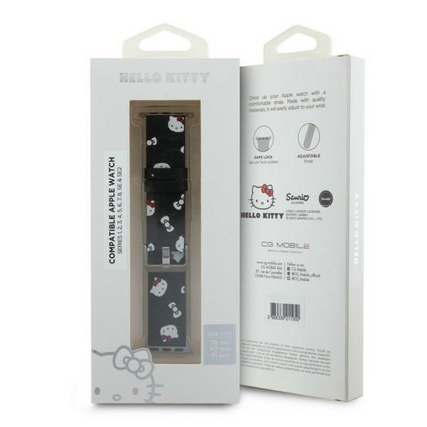 Cinturino Hello Kitty Leather Kitty & Bows per Apple Watch 42mm / 41mm / 40mm / 38mm Series, Nero