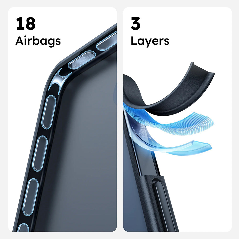 Questa custodia ultra resistente è equipaggiata con un anello magnetico ottimizzato per facilitare l'associazione con gli accessori MagSafe.