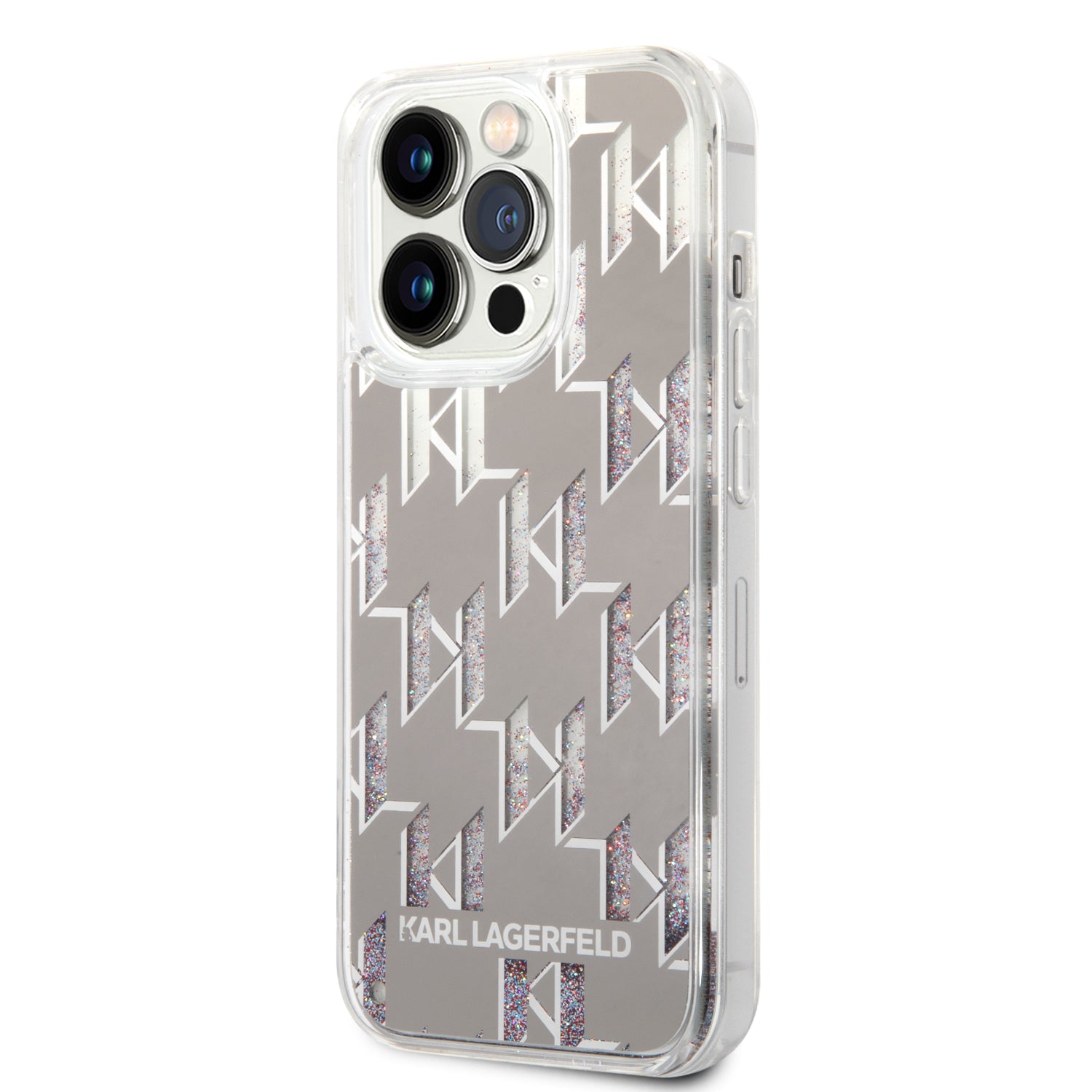 Custodia per Apple iPhone 14 Pro, Karl Lagerfeld, Liquid Glitter Monogram, Argento