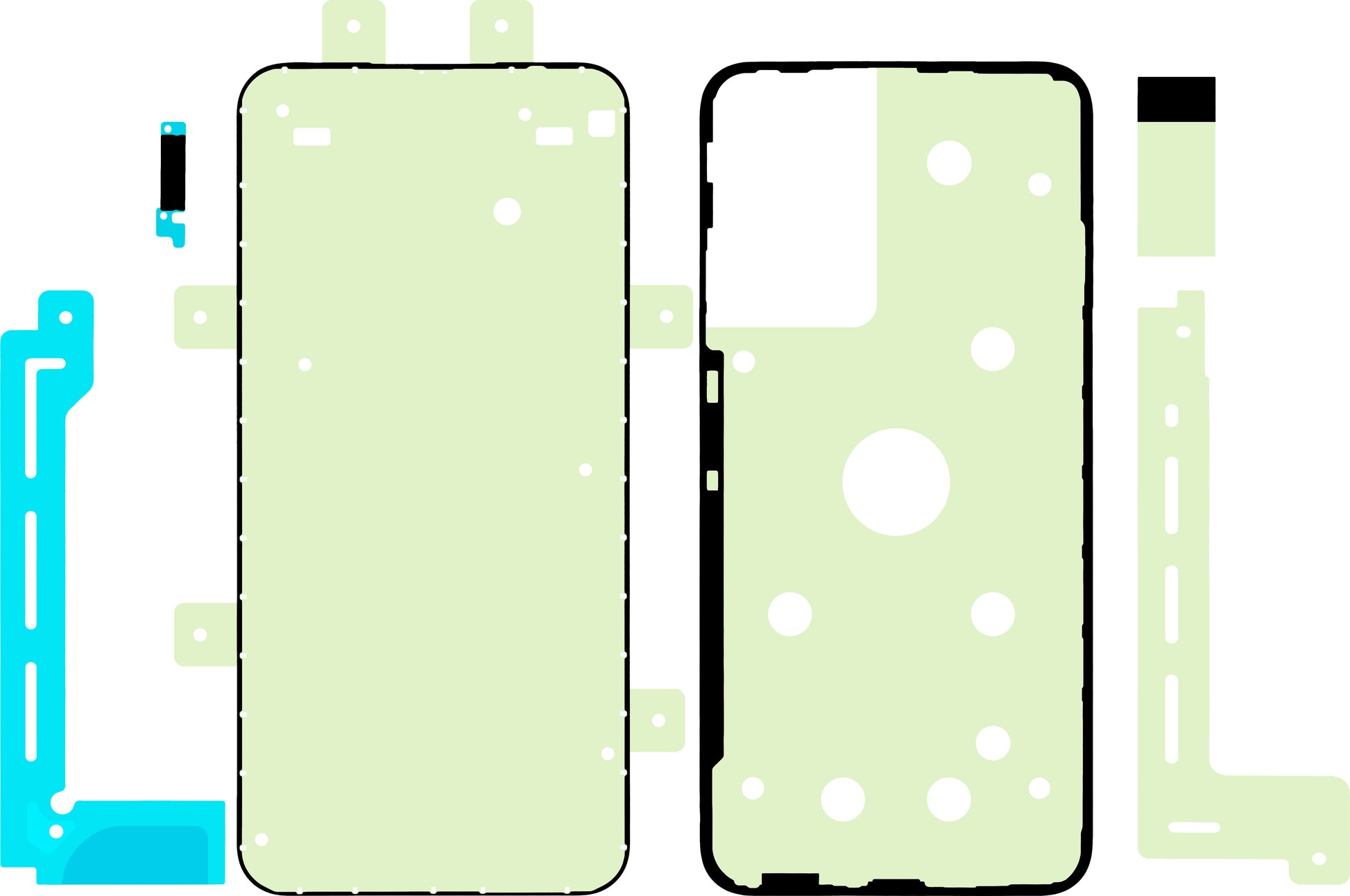 Adesivi destinati per fissare il display alla cornice del telefono.