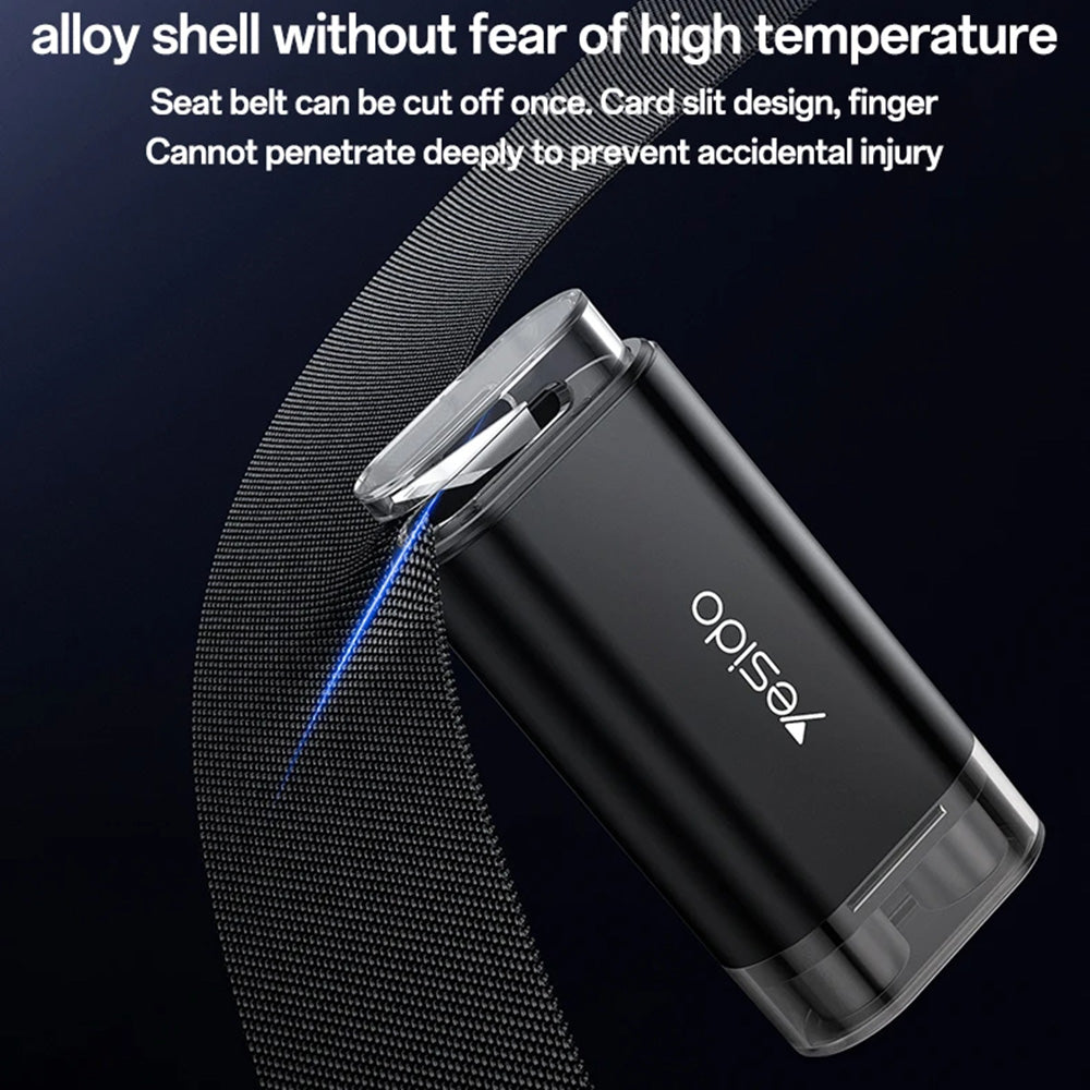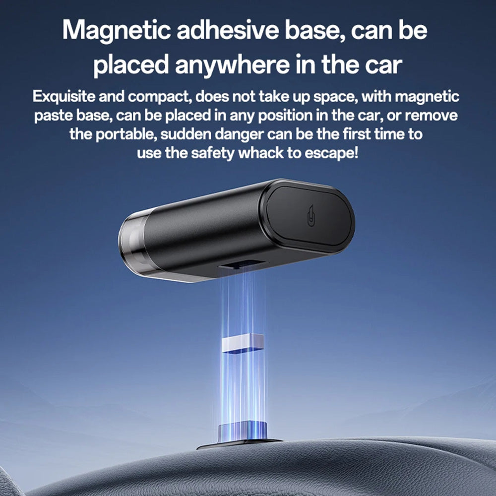 la lama in acciaio inossidabile taglia le cinture di sicurezza, e il magnete integrato permette un fissaggio visibile e facile in auto.