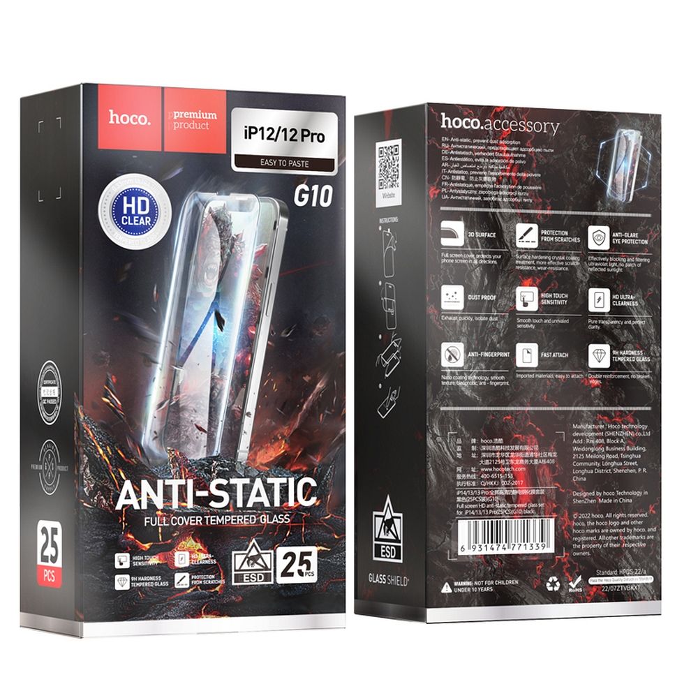 Pellicola protettiva per schermo HOCO per Apple iPhone 12 Pro Max, Vetro Temperato, Full Glue, Set 25 pezzi, Nera