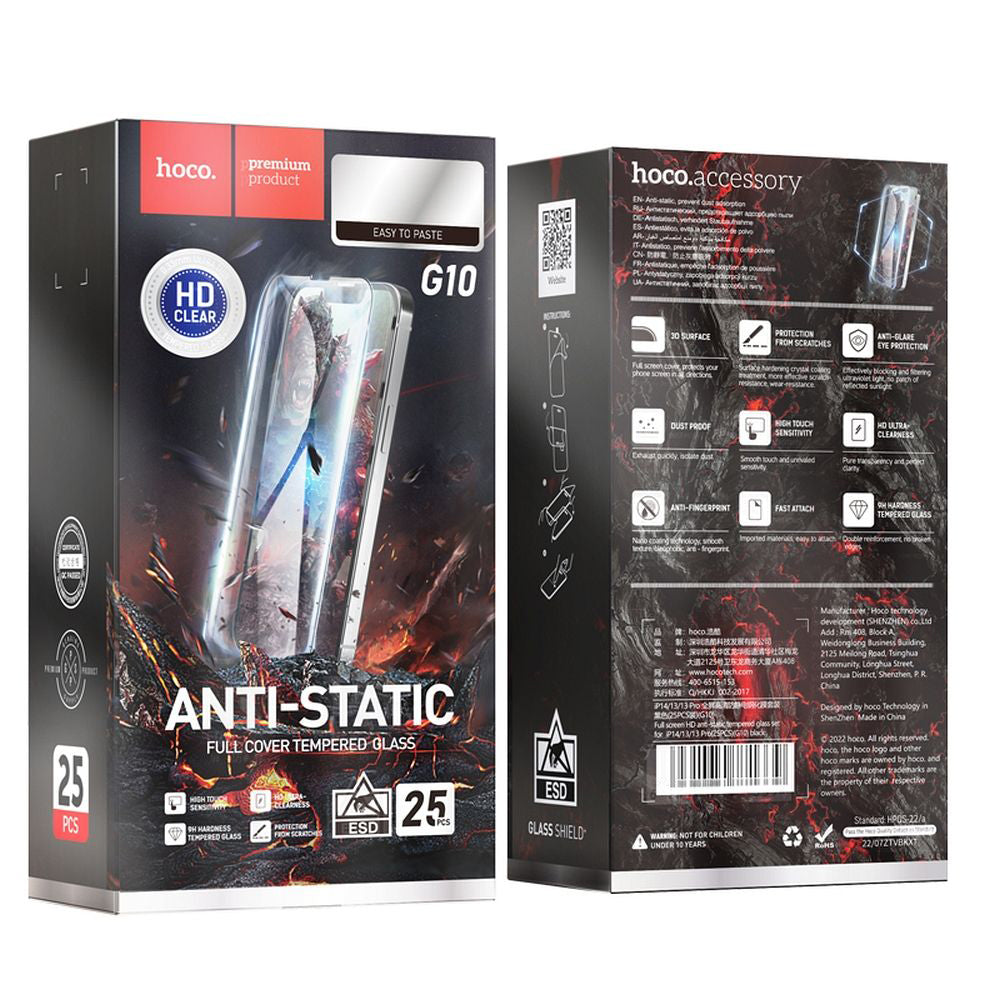 Pellicola Protettiva Schermo HOCO per Apple iPhone 14 Pro Max, Vetro Temperato, Full Glue, Set 25 pezzi, Nera