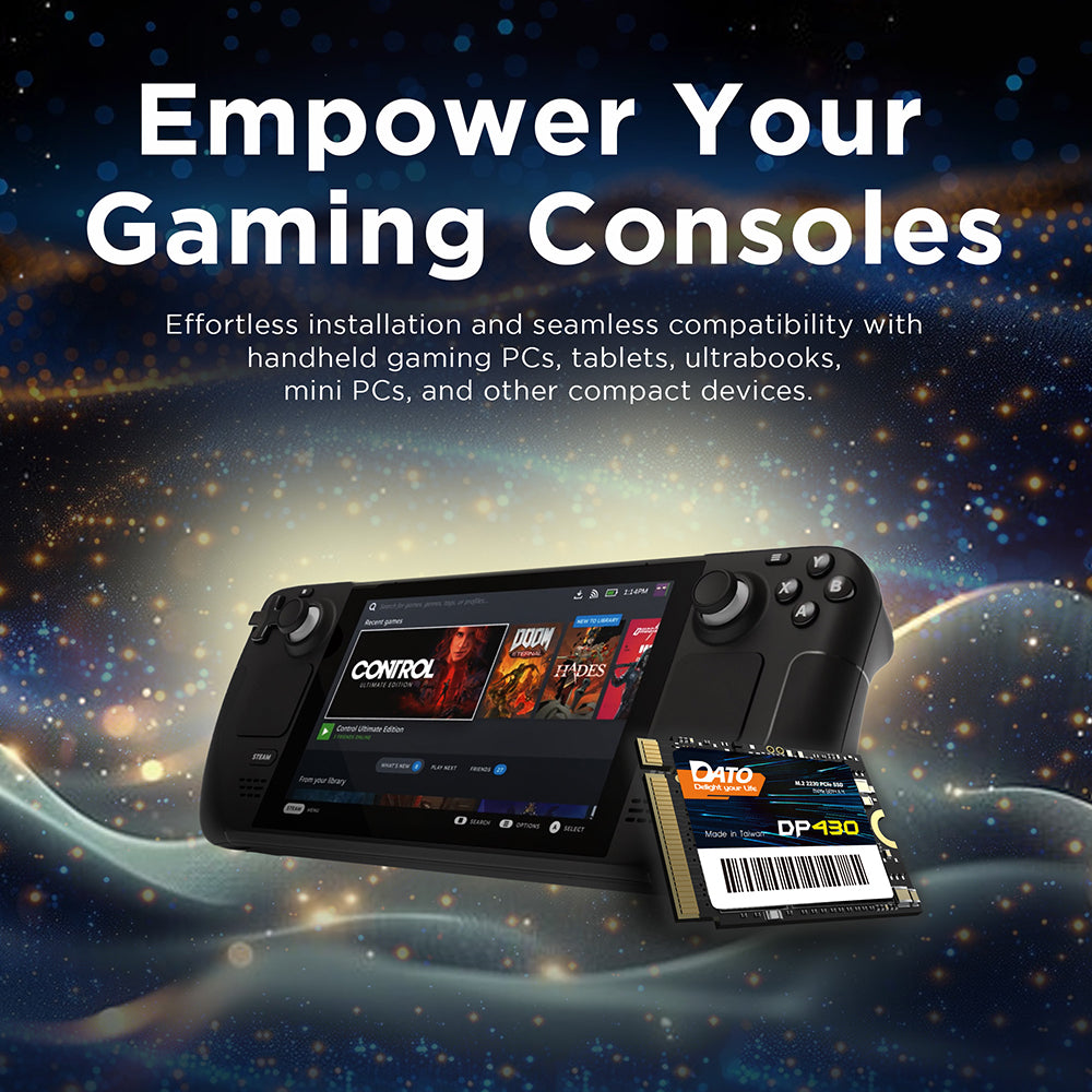 • L'SSD Dato è qui, pronto a offrirti una nuova esperienza di gioco. Osate testare le velocità fulminee di lettura e scrittura.