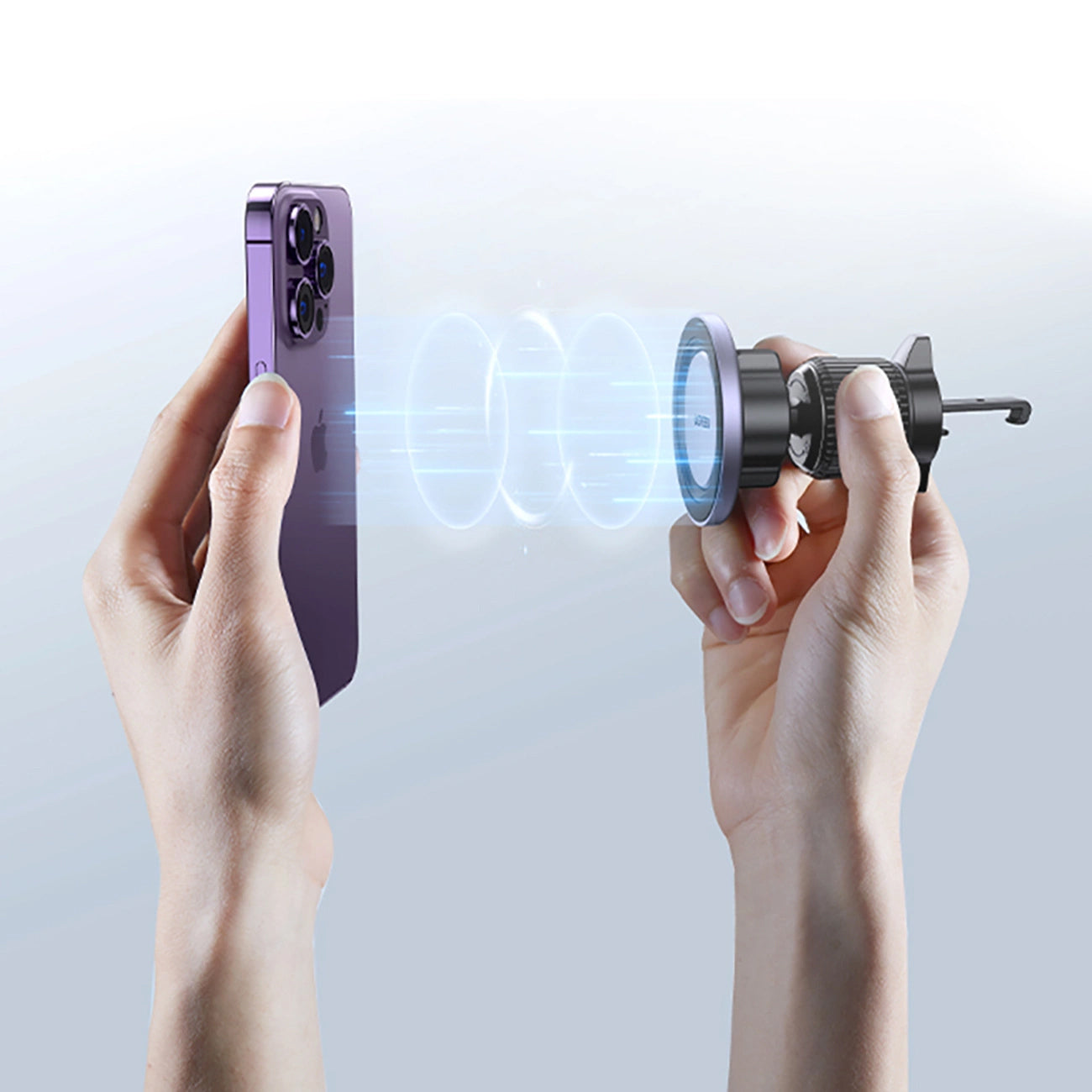 direttamente sulla griglia di ventilazione dell'auto. Dotato di magneti potenti, questo supporto mantiene il telefono fermo in posizione, anche quando